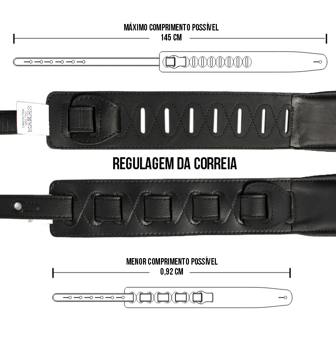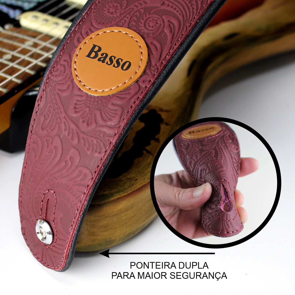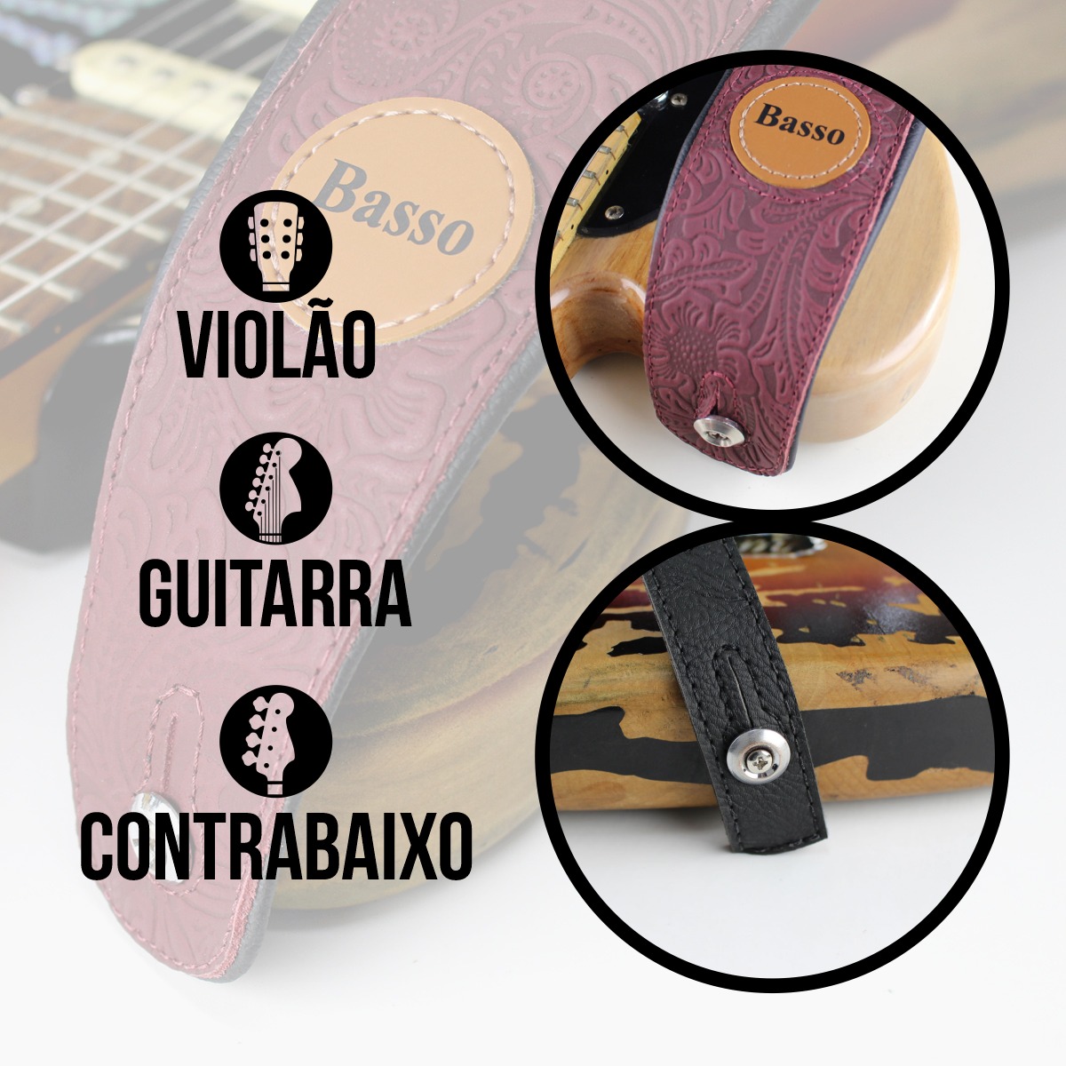 Diferenciais: - Correia estofada, Distribuindo o peso do instrumento no ombro; - Conforto máximo; - Ideal para o palco e ensaio com os amigos; - Visual moderno; - Produzida em material couro macio; ____________________________________________________________________________ Correia VT SL 53 Especificações: - Correia para guitarra, violão e contrabaixo, reciclável, produzida em couro macio; - Ajustável entre 92 cm e 145 cm de comprimento; Largura de 7 cm (no ombro) - Reforço na ponteira, evitando que “esgace” com o tempo (+ segurança); - Forro sintético para evitar a absorção do suor; ____________________________________________________________________________ A BASSO | Ecostrap® é uma empresa especializada em design e comercialização de acessórios para instrumentos musicais, com destaque para as correias. Com sede no Rio Grande do Sul, possui 22 anos de experiência e busca aperfeiçoar seus produtos com base no feedback dos músicos. Sua matriz em Novo Hamburgo facilita o acesso às melhores tecnologias de produção. Líder de mercado, a BASSO | Ecostrap® oferece correias de alta qualidade, unindo estilo, segurança e conforto para músicos. ___________________________________________________________________________ As correias também devem agregar estilo e personalidade ao seu visual durante as apresentações ou ensaios. Escolha a correia ideal para você e aproveite ao máximo sua experiência musical. OBSERVAÇÃO IMPORTANTE: DEVIDO AOS RECURSOS FOTOGRÁFICOS, PODE HAVER VARIAÇÃO DE TONALIDADE CONFORME A RESOLUÇÃO DE TELA UTILIZADA, BEM COMO A TEXTURA DOS MATERIAIS VARIA DE ACORDO COM A PARTE DO MATERIAL ONDE É CORTADA.