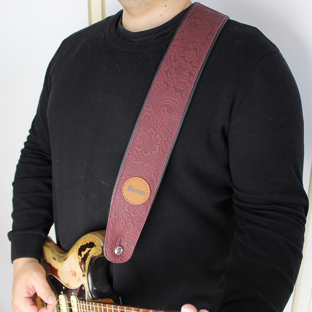 Correia Alça Violão Guitarra Contrabaixo Basso VT SL 53 Couro Bordô