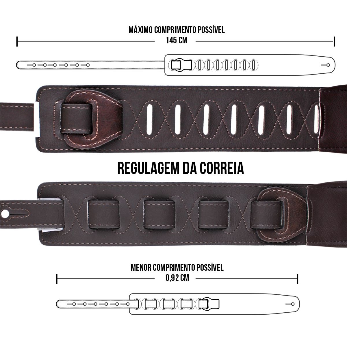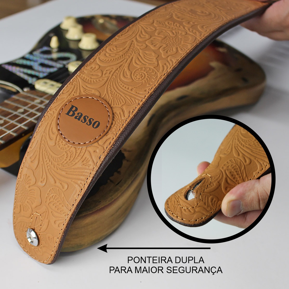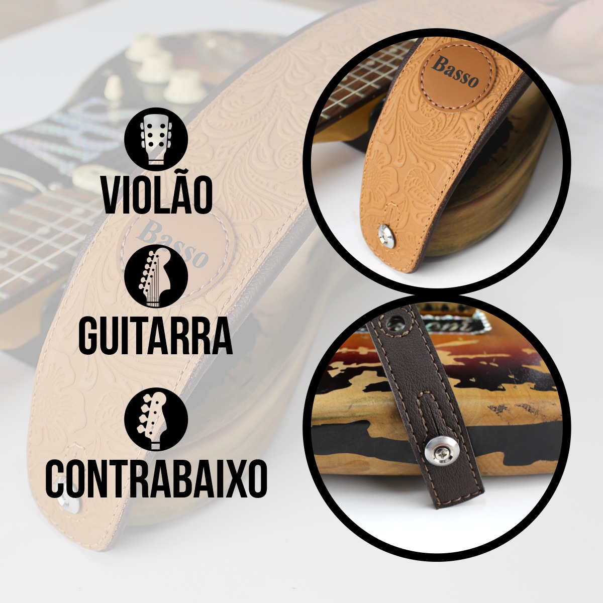 Diferenciais: - Correia estofada, Distribuindo o peso do instrumento no ombro; - Conforto máximo; - Ideal para o palco e ensaio com os amigos; - Visual moderno; - Produzida em material couro macio; ____________________________________________________________________________ Correia VT SL 83 Especificações: - Correia para guitarra, violão e contrabaixo, reciclável, produzida em couro macio; - Ajustável entre 92 cm e 145 cm de comprimento; Largura de 7 cm (no ombro) - Reforço na ponteira, evitando que “esgace” com o tempo (+ segurança); - Forro sintético para evitar a absorção do suor; ____________________________________________________________________________ A BASSO | Ecostrap® é uma empresa especializada em design e comercialização de acessórios para instrumentos musicais, com destaque para as correias. Com sede no Rio Grande do Sul, possui 22 anos de experiência e busca aperfeiçoar seus produtos com base no feedback dos músicos. Sua matriz em Novo Hamburgo facilita o acesso às melhores tecnologias de produção. Líder de mercado, a BASSO | Ecostrap® oferece correias de alta qualidade, unindo estilo, segurança e conforto para músicos. ___________________________________________________________________________ As correias também devem agregar estilo e personalidade ao seu visual durante as apresentações ou ensaios. Escolha a correia ideal para você e aproveite ao máximo sua experiência musical. OBSERVAÇÃO IMPORTANTE: DEVIDO AOS RECURSOS FOTOGRÁFICOS, PODE HAVER VARIAÇÃO DE TONALIDADE CONFORME A RESOLUÇÃO DE TELA UTILIZADA, BEM COMO A TEXTURA DOS MATERIAIS VARIA DE ACORDO COM A PARTE DO MATERIAL ONDE É CORTADA.
