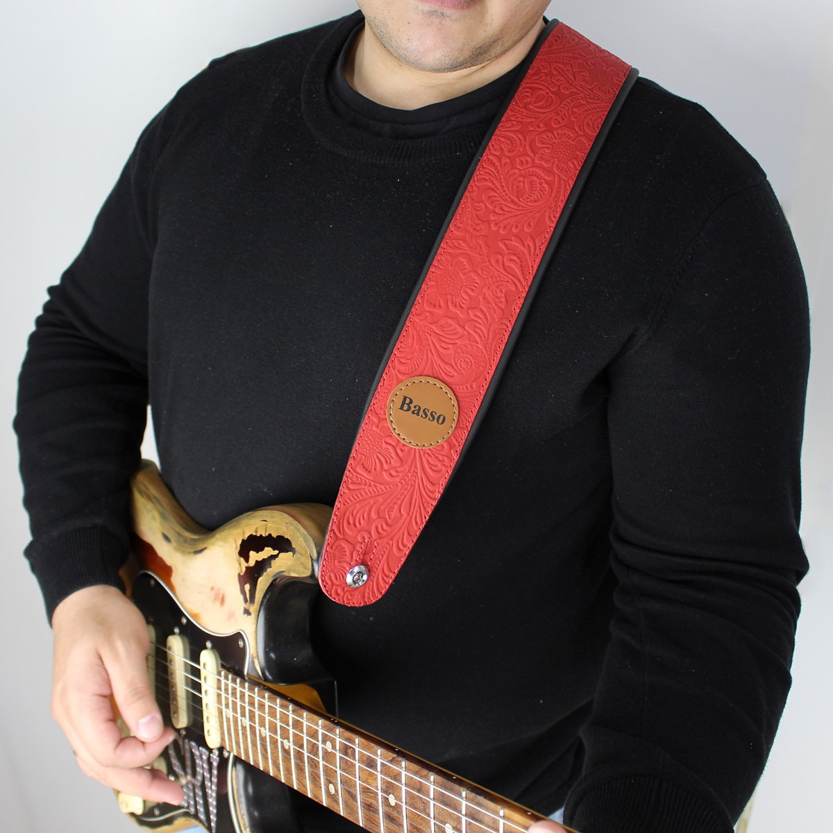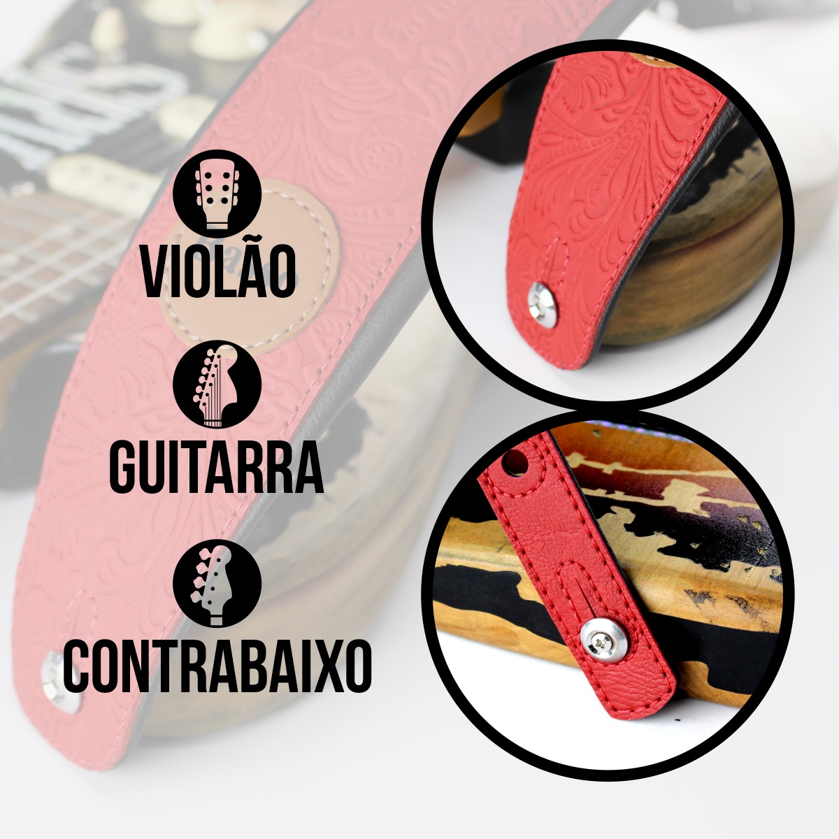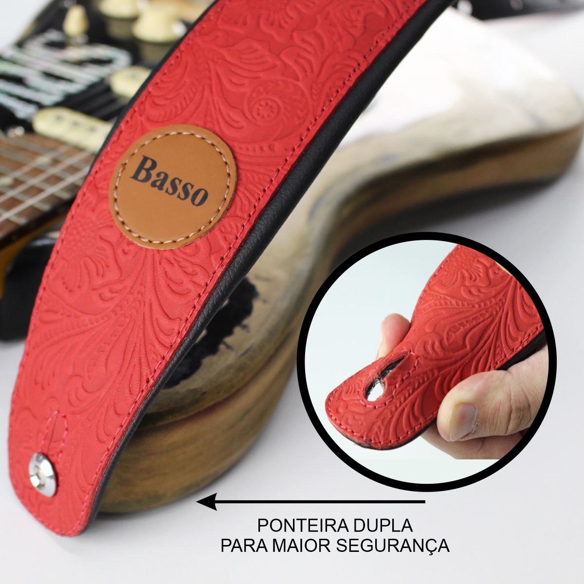 Diferenciais: - Correia estofada, Distribuindo o peso do instrumento no ombro; - Conforto máximo; - Ideal para o palco e ensaio com os amigos; - Visual moderno; - Produzida em material couro macio; ____________________________________________________________________________ Correia VT SL 87 Vermelho Especificações: - Correia para guitarra, violão e contrabaixo, reciclável, produzida em couro macio; - Ajustável entre 92 cm e 145 cm de comprimento; Largura de 7 cm (no ombro) - Reforço na ponteira, evitando que “esgace” com o tempo (+ segurança); - Forro sintético para evitar a absorção do suor; ____________________________________________________________________________ A BASSO | Ecostrap® é uma empresa especializada em design e comercialização de acessórios para instrumentos musicais, com destaque para as correias. Com sede no Rio Grande do Sul, possui 22 anos de experiência e busca aperfeiçoar seus produtos com base no feedback dos músicos. Sua matriz em Novo Hamburgo facilita o acesso às melhores tecnologias de produção. Líder de mercado, a BASSO | Ecostrap® oferece correias de alta qualidade, unindo estilo, segurança e conforto para músicos. ___________________________________________________________________________ As correias também devem agregar estilo e personalidade ao seu visual durante as apresentações ou ensaios. Escolha a correia ideal para você e aproveite ao máximo sua experiência musical. OBSERVAÇÃO IMPORTANTE: DEVIDO AOS RECURSOS FOTOGRÁFICOS, PODE HAVER VARIAÇÃO DE TONALIDADE CONFORME A RESOLUÇÃO DE TELA UTILIZADA, BEM COMO A TEXTURA DOS MATERIAIS VARIA DE ACORDO COM A PARTE DO MATERIAL ONDE É CORTADA.